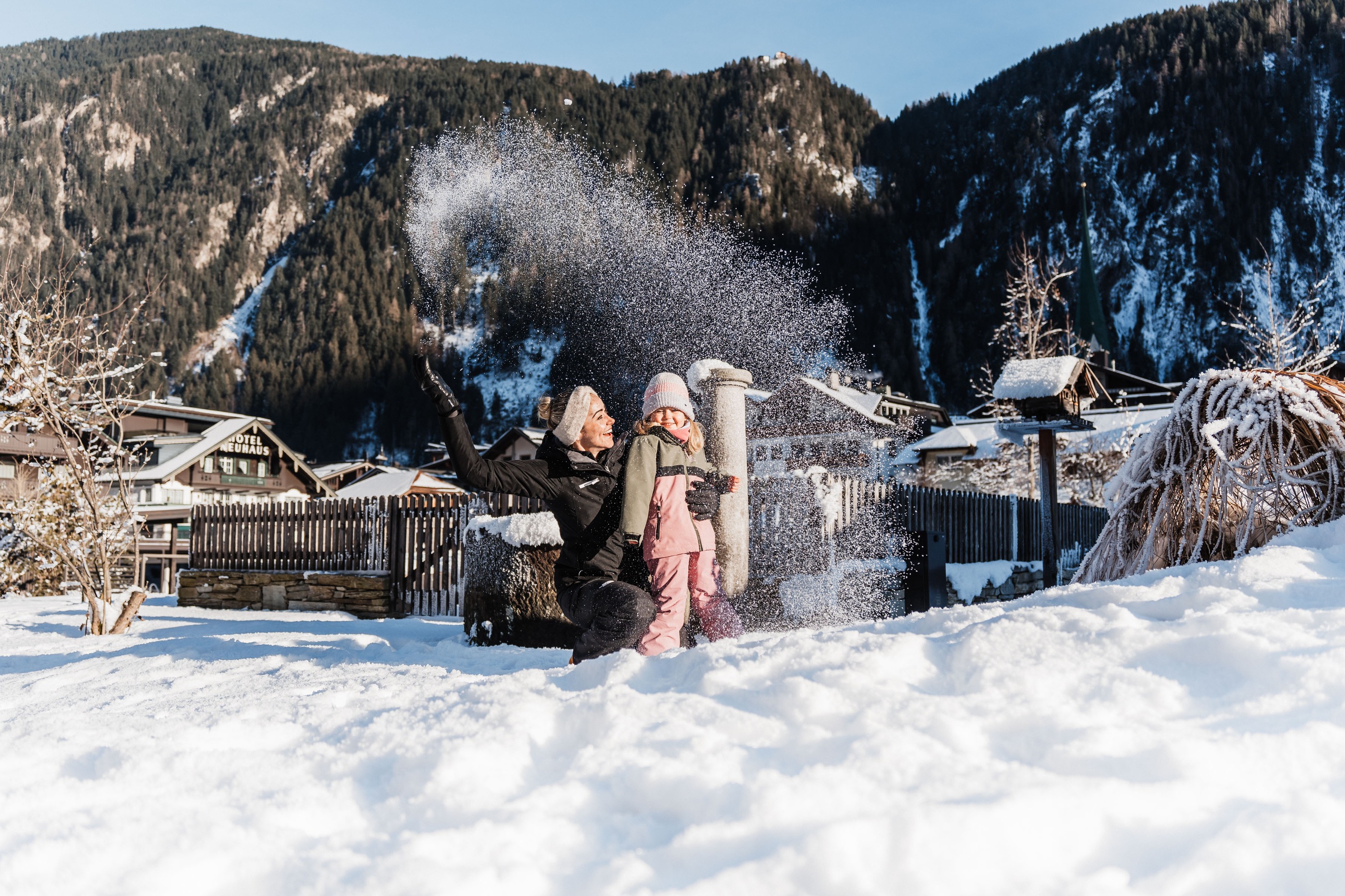 Der 15.000qm Romantikgarten verwandelt sich im Winter in ein Winterparadies: Eisbaden für die Eltern, Schneemann bauen, Rodeln oder mit dem Tellerbob die Hänge hinuntersausen. Skispaß am Ahorn und Penken rundet das winterliche Abenteuer für Groß und Klein perfekt ab.