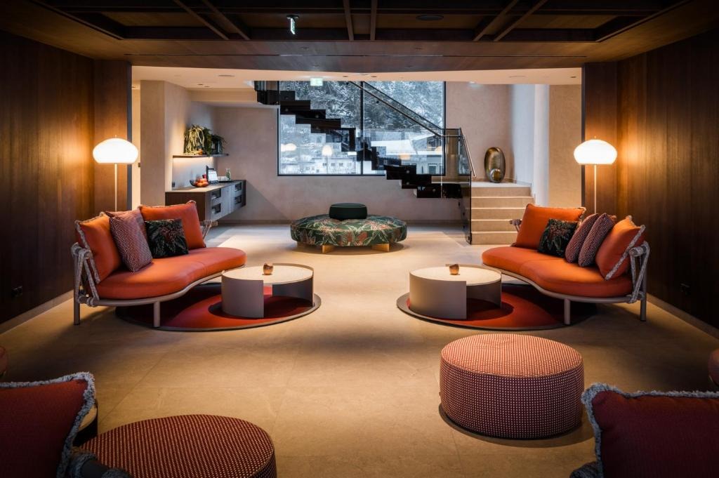 Die Familiensuite verfügt über ein kombiniertes Wohn-Schlafzimmer, das mit einem hochwertige Boxspringbett für erlesenen Schlafkomfort sorgt. Entspannen lässt es sich am besten auf dem hochwertigen Sofa und Fauteuil der renommierten Wiener Möbelmanufaktur Wittmann.Helle Eiche und weiche Schafwolle aus hochwertigen Naturmaterialien verleihen den Räumen eine gemütliche und einladende Atmosphäre.